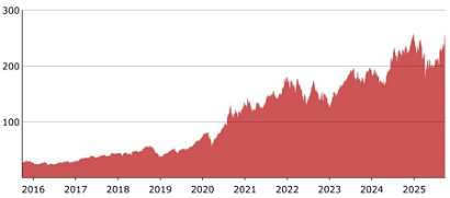 The following graph sets forth the historical performance of AMZN based on the daily historical closing values from September 30, 2015 through September 30, 2025. We obtained the closing values below from the Bloomberg Professional® service. We have not undertaken any independent review of, or made any due diligence inquiry with respect to, the information obtained from the Bloomberg Professional® service.