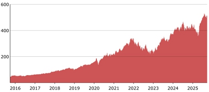 The following graph sets forth the historical performance of AAPL based on the daily historical closing values from September 30, 2015 through September 30, 2025. We obtained the closing values below from the Bloomberg Professional® service. We have not undertaken any independent review of, or made any due diligence inquiry with respect to, the information obtained from the Bloomberg Professional® service.