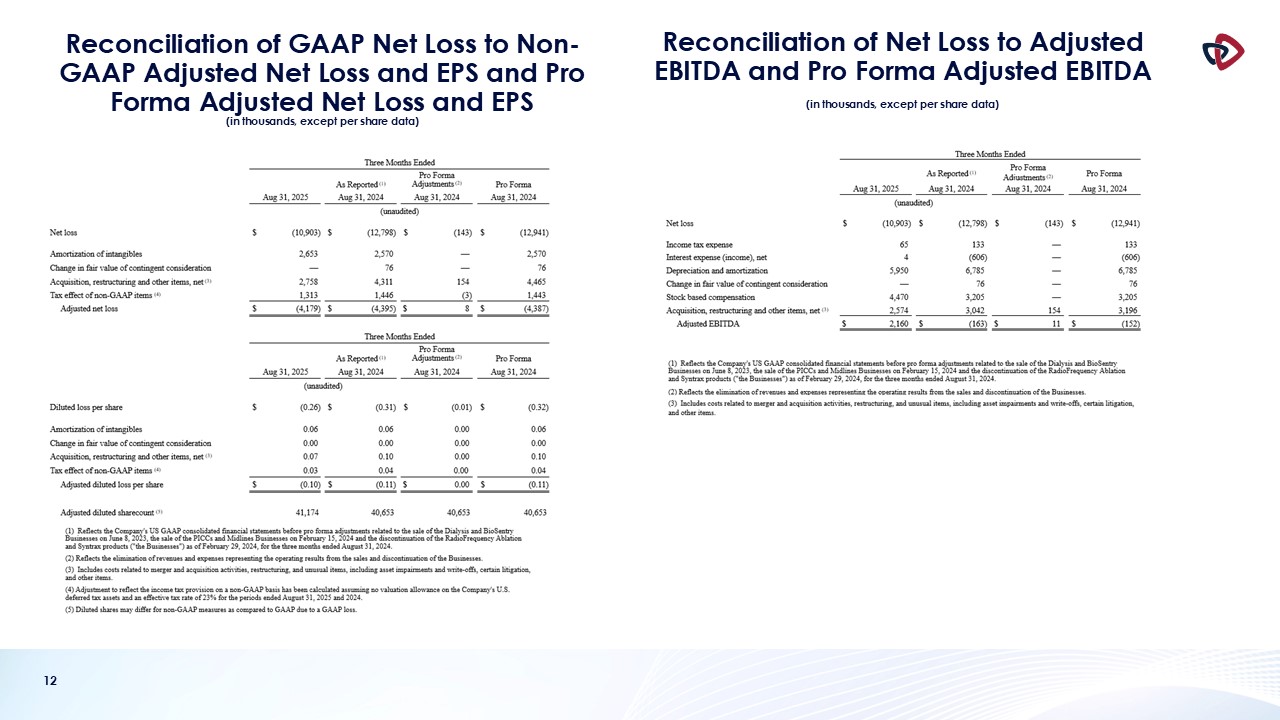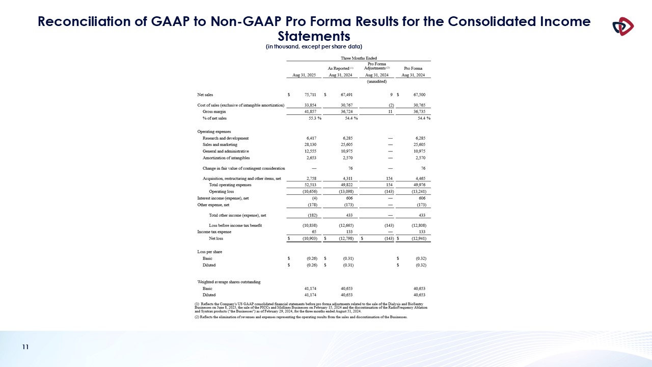 prepared in accordance with GAAP. In this presentation, AngioDynamics has reported pro forma results, adjusted EBITDA (income before interest, taxes, depreciation and amortization and stock-based compensation); adjusted net income and adjusted