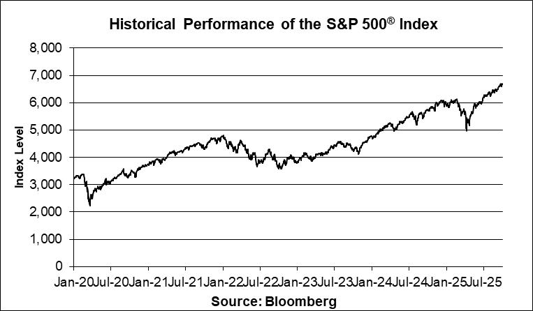 The following graph sets forth the historical performance of the S&P 500® Index based on the daily historical closing levels of the S&P 500® Index from January 2, 2020 through September 30, 2025. The closing level of the S&P 500® Index on September 30, 2025 was 6,688.46. We obtained the closing levels above and below from the Bloomberg Professional® service (“Bloomberg”), without independent verification.