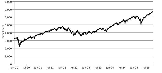 The graph below shows the closing levels of the underlier on each day from January 2, 2020 through September 30, 2025. The closing level of the underlier on September 30, 2025 was 6,688.46. We obtained the closing levels shown above and in the graph below from the Bloomberg Professional® service (“Bloomberg”), without independent verification.