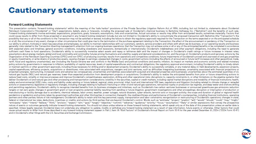 results to differ from those described in any forward-looking statement appear in Part I, Item 1A “Risk Factors” of Occidental’s Annual Report on Form 10-K for the year ended December 31, 2024 (“2024 Form 10-K”) and in Occidental’s other