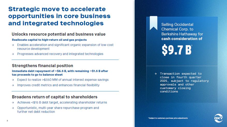 “Oxy”) expectations, beliefs, plans or forecasts, including the proposed sale of Occidental's chemical business to Berkshire Hathaway Inc. ("Berkshire") and the benefits of such sale. Forward-looking statements involve estimates,