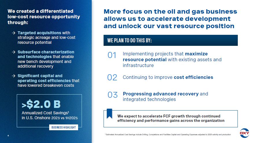 regimes, and deep-water and onshore drilling and permitting regulations; Occidental’s ability to recognize intended benefits from its business strategies and initiatives, such as Occidental’s low-carbon ventures businesses or announced