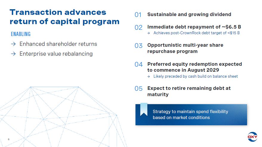 “forward-looking statements” within the meaning of the “safe harbor” provisions of the Private Securities Litigation Reform Act of 1995, including, but not limited to, statements about Occidental Petroleum Corporation’s (“Occidental” or
