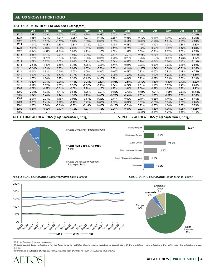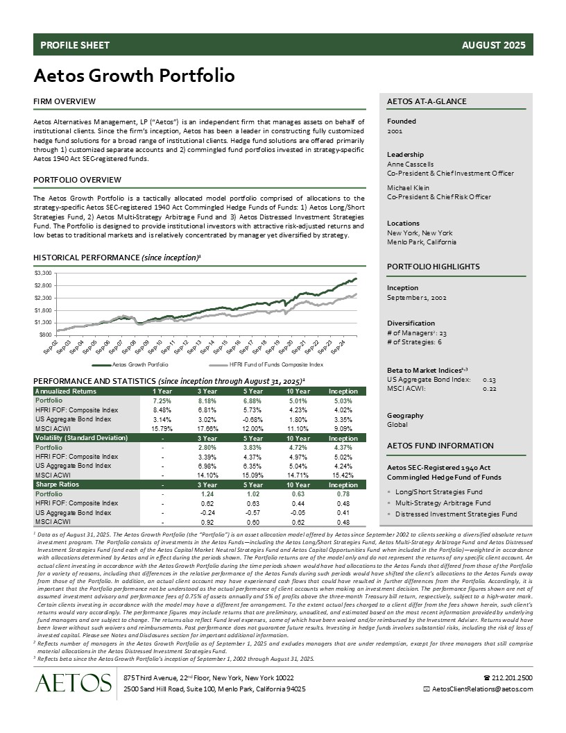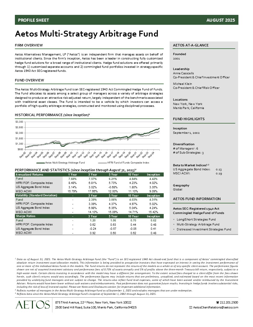 Form ADV of Aetos Alternatives Management, LP, which is available upon request from your Aetos contact and on the SEC website. Aetos Alternatives Management is an SEC-registered investment adviser and serves as investment adviser to