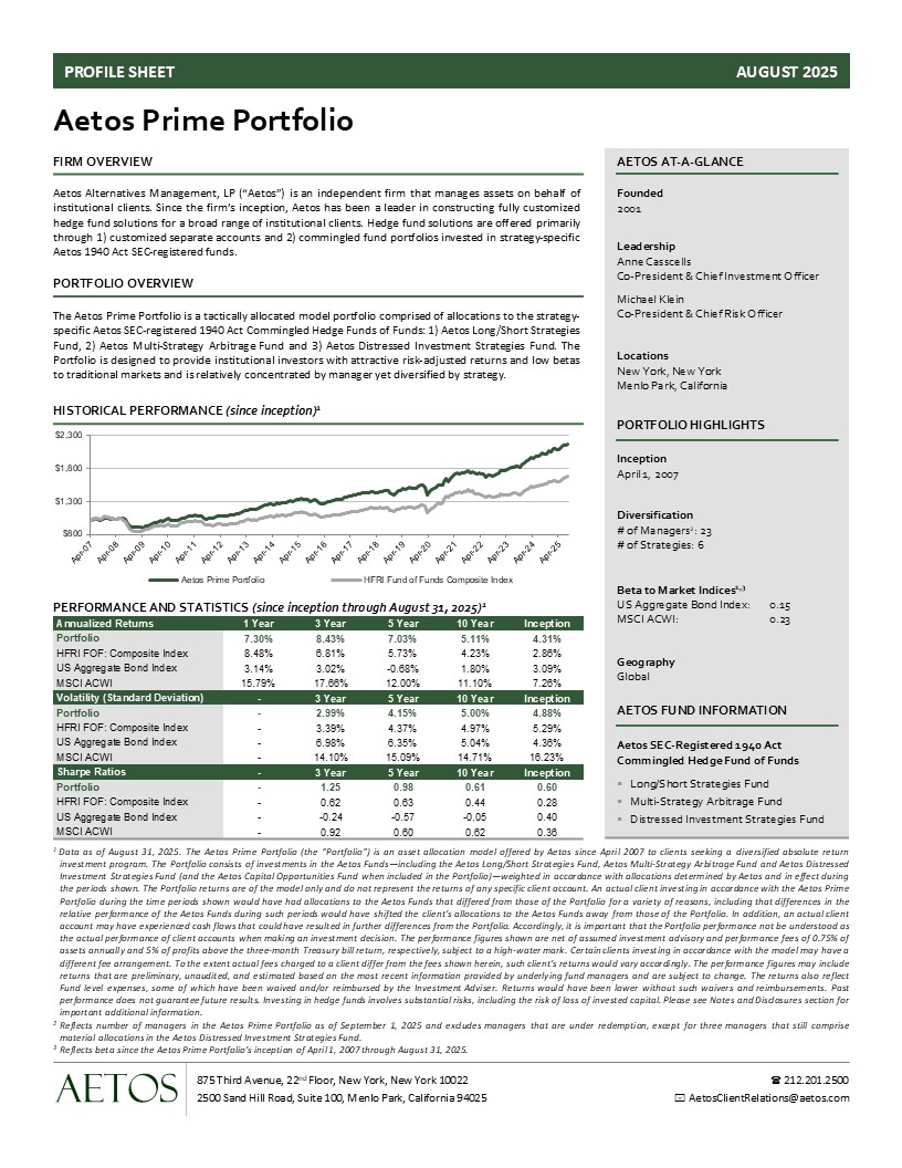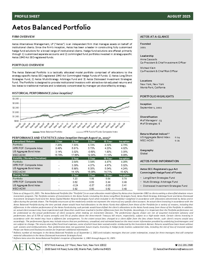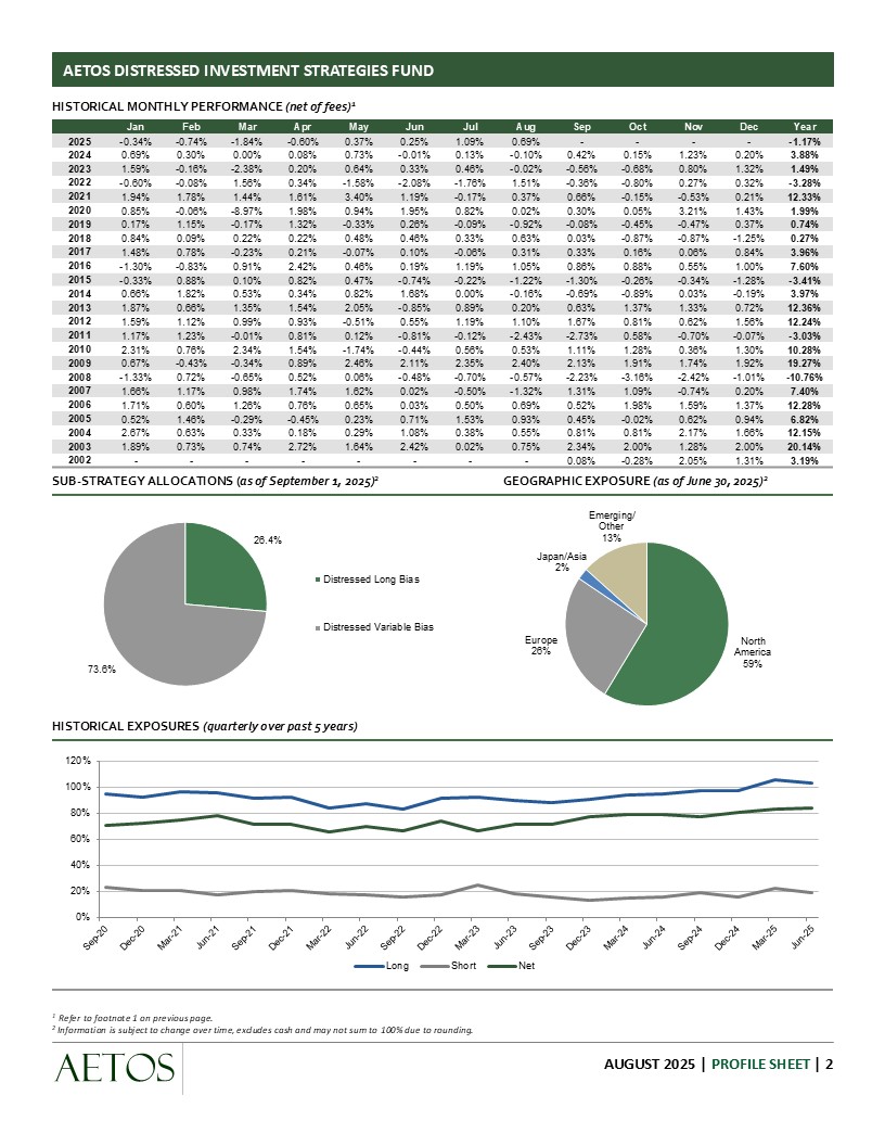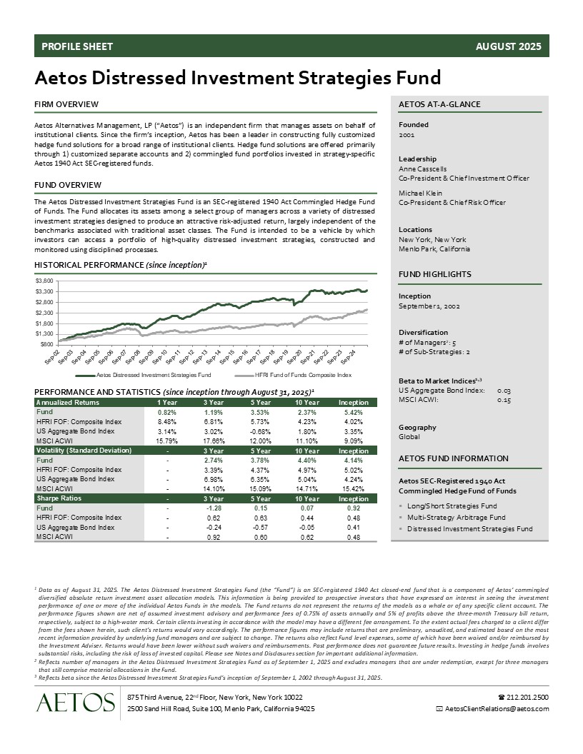 Form ADV of Aetos Alternatives Management, LP, which is available upon request from your Aetos contact and on the SEC website. Aetos Alternatives Management is an SEC-registered investment adviser and serves as investment adviser to