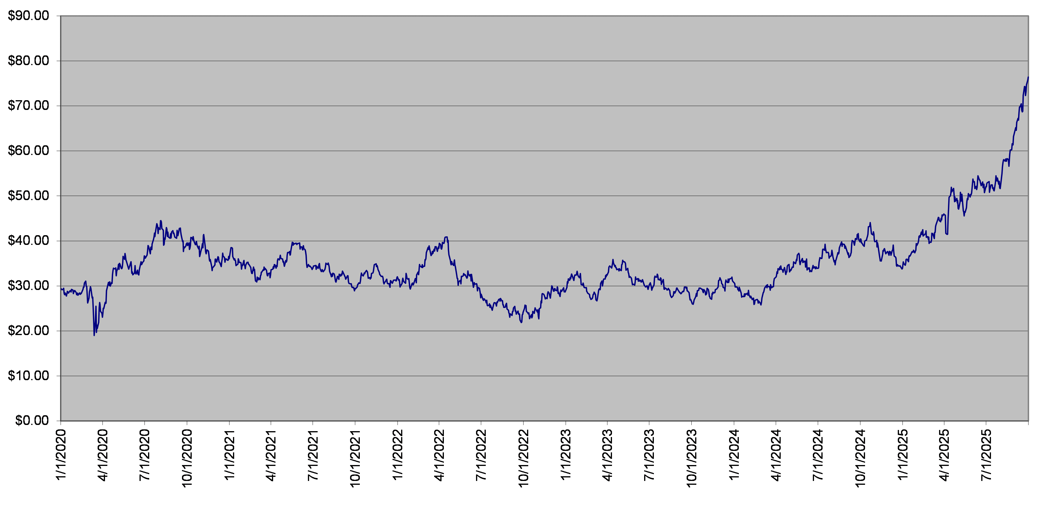 VanEck® Gold Miners ETF Daily Underlier Closing Levels January 1, 2020 to September 30, 2025 |
