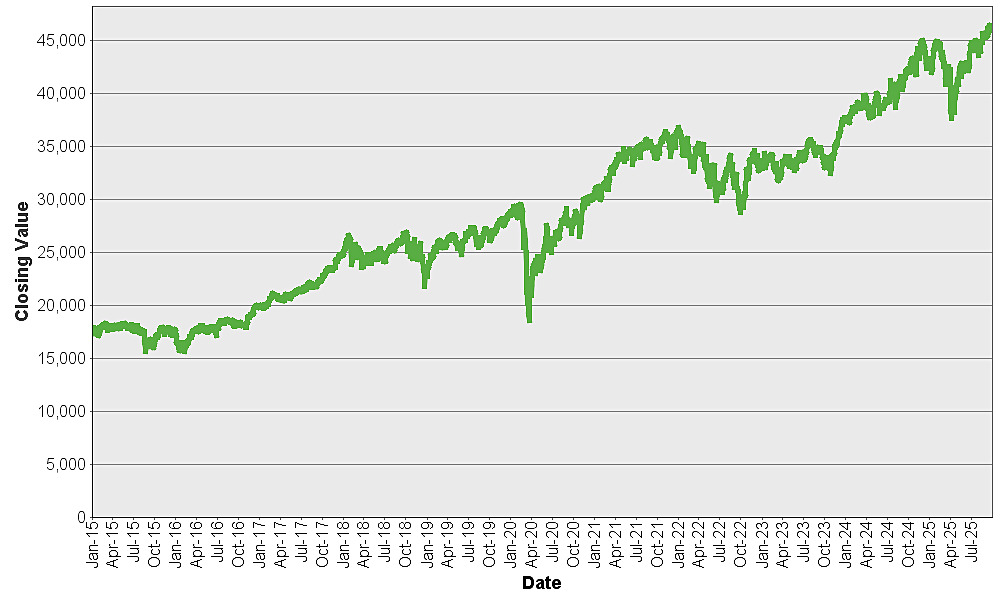 The graph below shows the closing value of the Dow Jones Industrial AverageTM for each day such value was available from January 2, 2015 to October 1, 2025. We obtained the closing values from Bloomberg L.P., without independent verification. You should not take historical closing values as an indication of future performance.