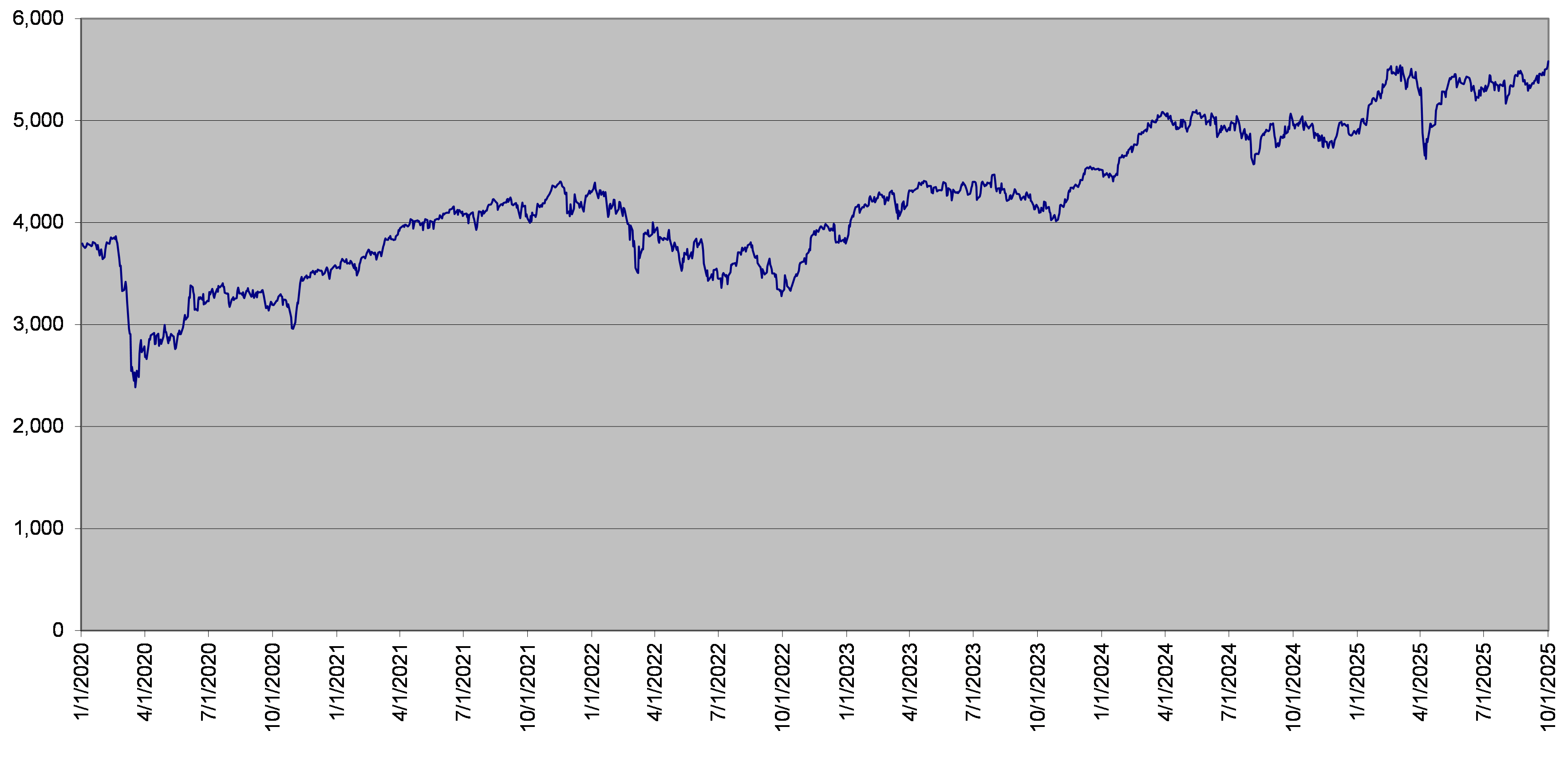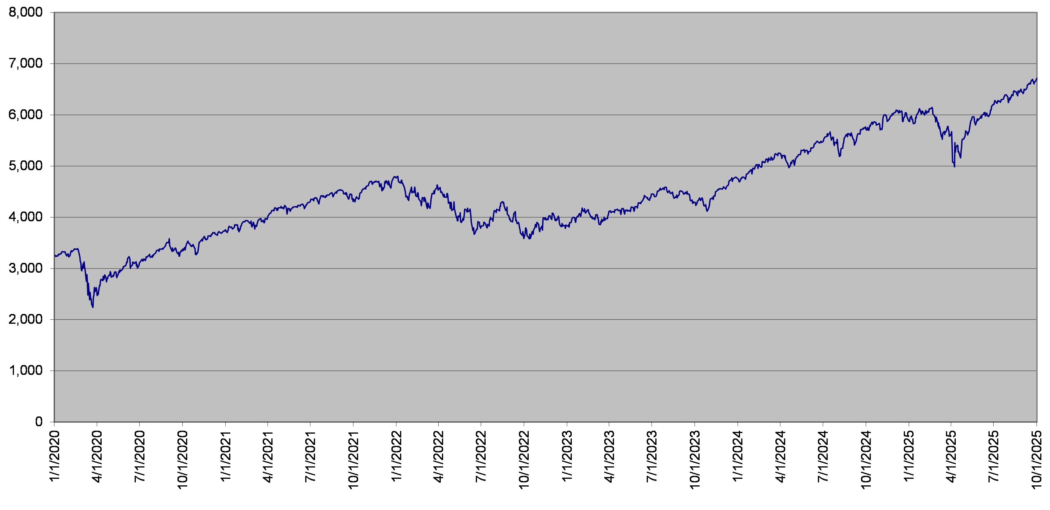 SPX Index Daily Closing Levels January 1, 2020 to October 1, 2025 |