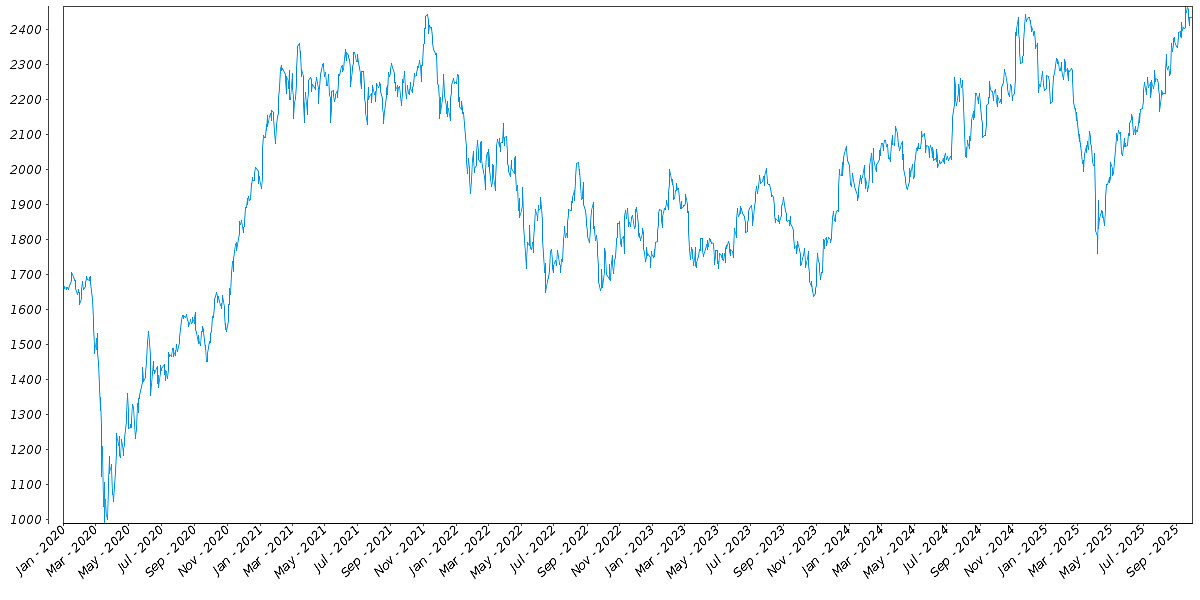 The following graph sets forth the daily historical performance of the SPX in the period from January 2, 2020 through September 30, 2025. We obtained this historical data from Bloomberg L.P. We have not independently verified the accuracy or completeness of the information obtained from Bloomberg L.P. On September 30, 2025, the closing level of the SPX was 6,688.46.