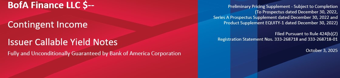 All payments on the Notes are subject to the credit risk of BofA Finance LLC (“BofA Finance” or the “Issuer”), as issuer of the Notes, and Bank of America Corporation (“BAC” or the “Guarantor”), as guarantor of the Notes.