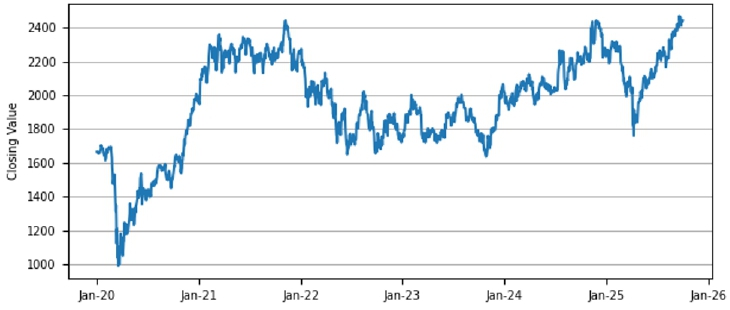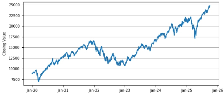 The following graph sets forth the historical performance of the NDX based on the daily historical closing values from January 1, 2020 through October 2, 2025. We obtained the closing values below from Bloomberg. We have not undertaken any independent review of, or made any due diligence inquiry with respect to, the information obtained from Bloomberg.