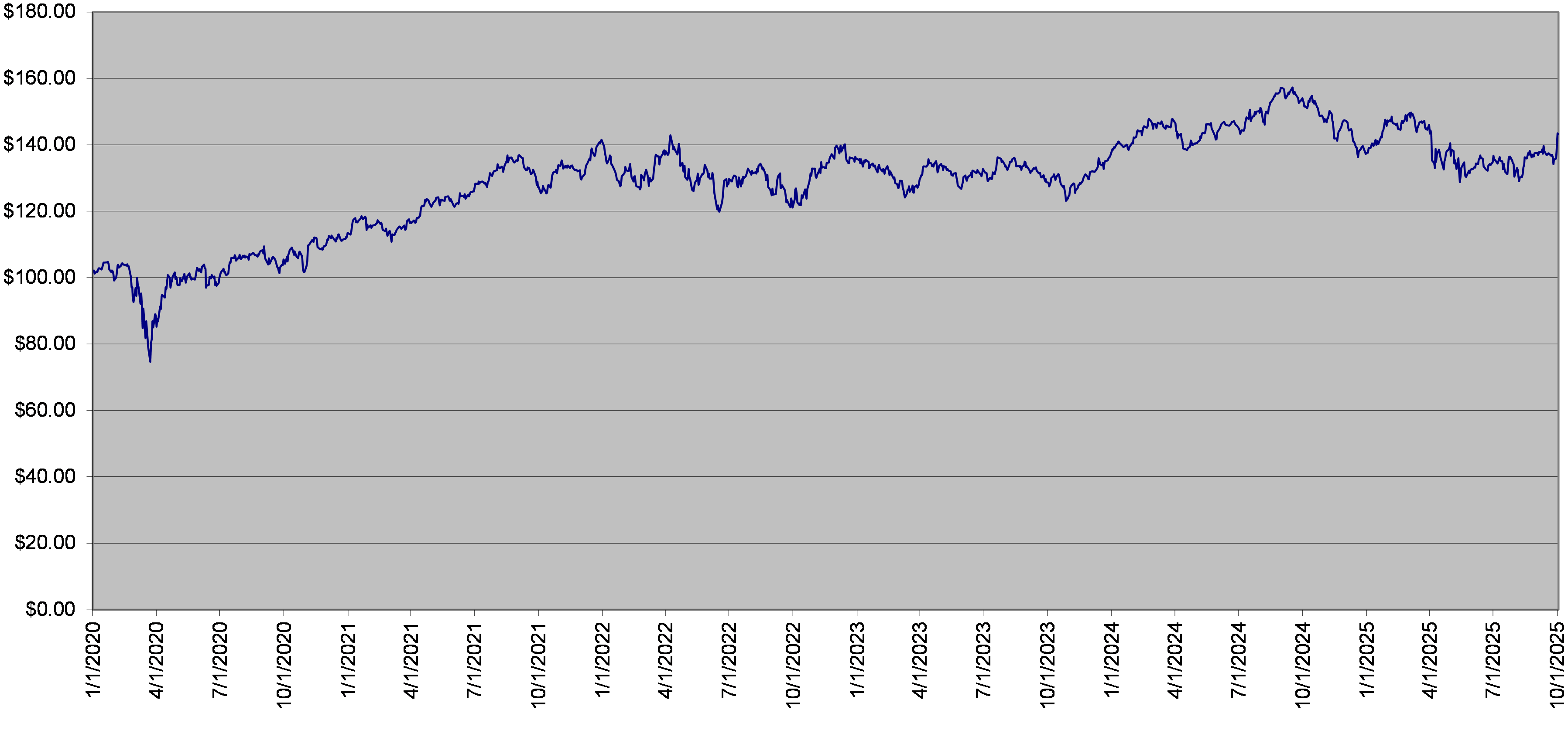 XLV Fund Daily Closing Levels January 1, 2020 to October 2, 2025 |