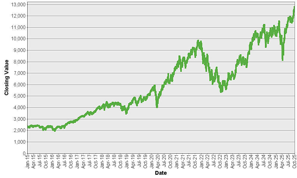 The graph below shows the closing value of the Nasdaq-100® Technology Sector IndexSM for each day such value was available from January 2, 2015 to October 3, 2025. We obtained the closing values from Bloomberg L.P., without independent verification. You should not take historical closing values as an indication of future performance.