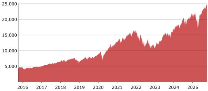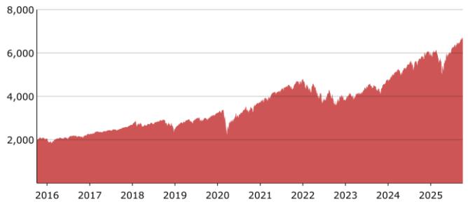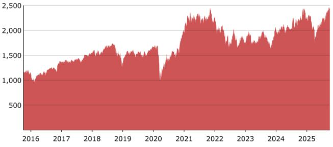 The following graph sets forth the historical performance of the RTY based on the daily historical closing values from October 3, 2015 through October 3, 2025. We obtained the closing values below from the Bloomberg Professional® service. We have not undertaken any independent review of, or made any due diligence inquiry with respect to, the information obtained from the Bloomberg Professional® service.
