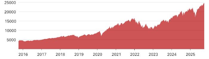 The following graph sets forth the historical performance of the NDX based on the daily historical closing values from October 5, 2015 through October 3, 2025. We obtained the closing values below from the Bloomberg Professional® service. We have not undertaken any independent review of, or made any due diligence inquiry with respect to, the information obtained from the Bloomberg Professional® service.![]() |