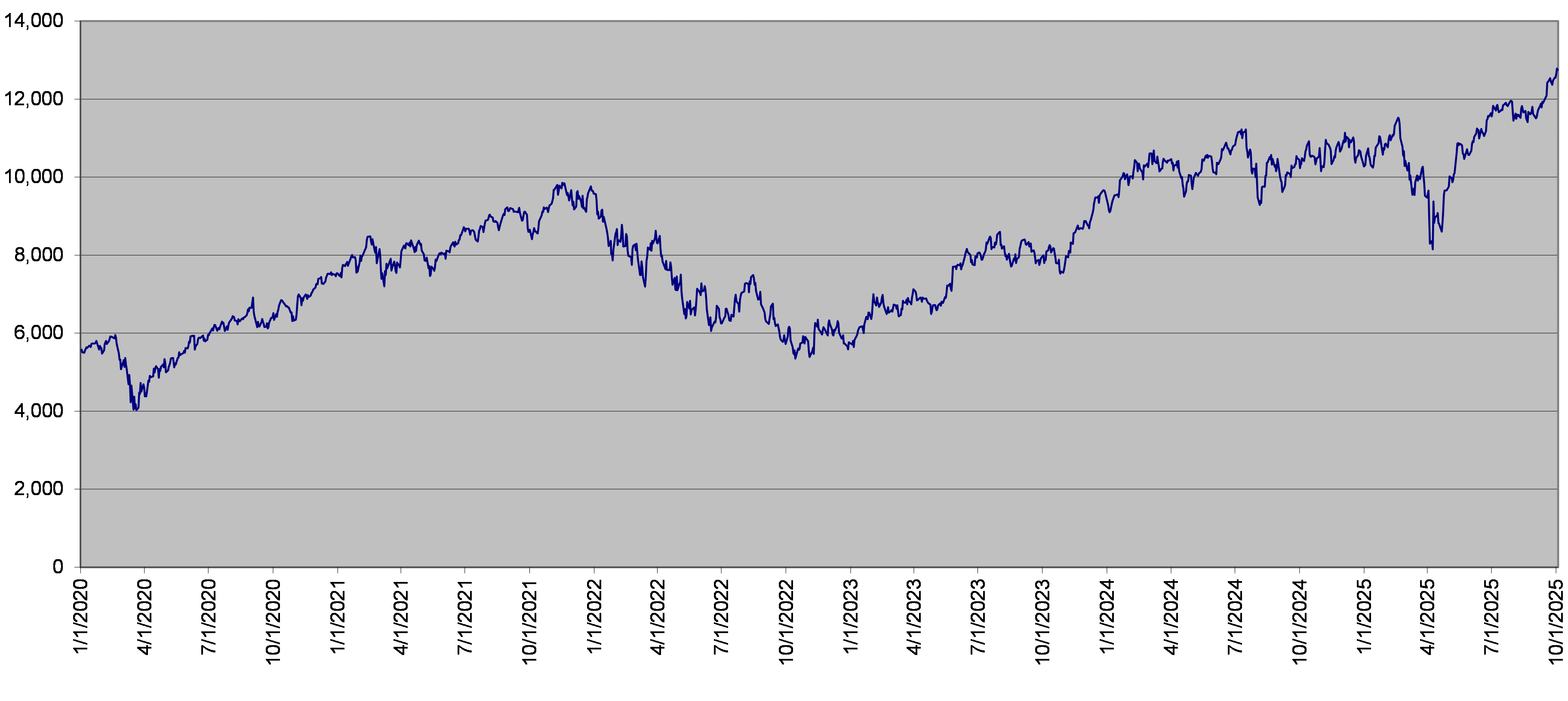 NDXT Index Daily Closing Levels January 1, 2020 to October 3, 2025 |