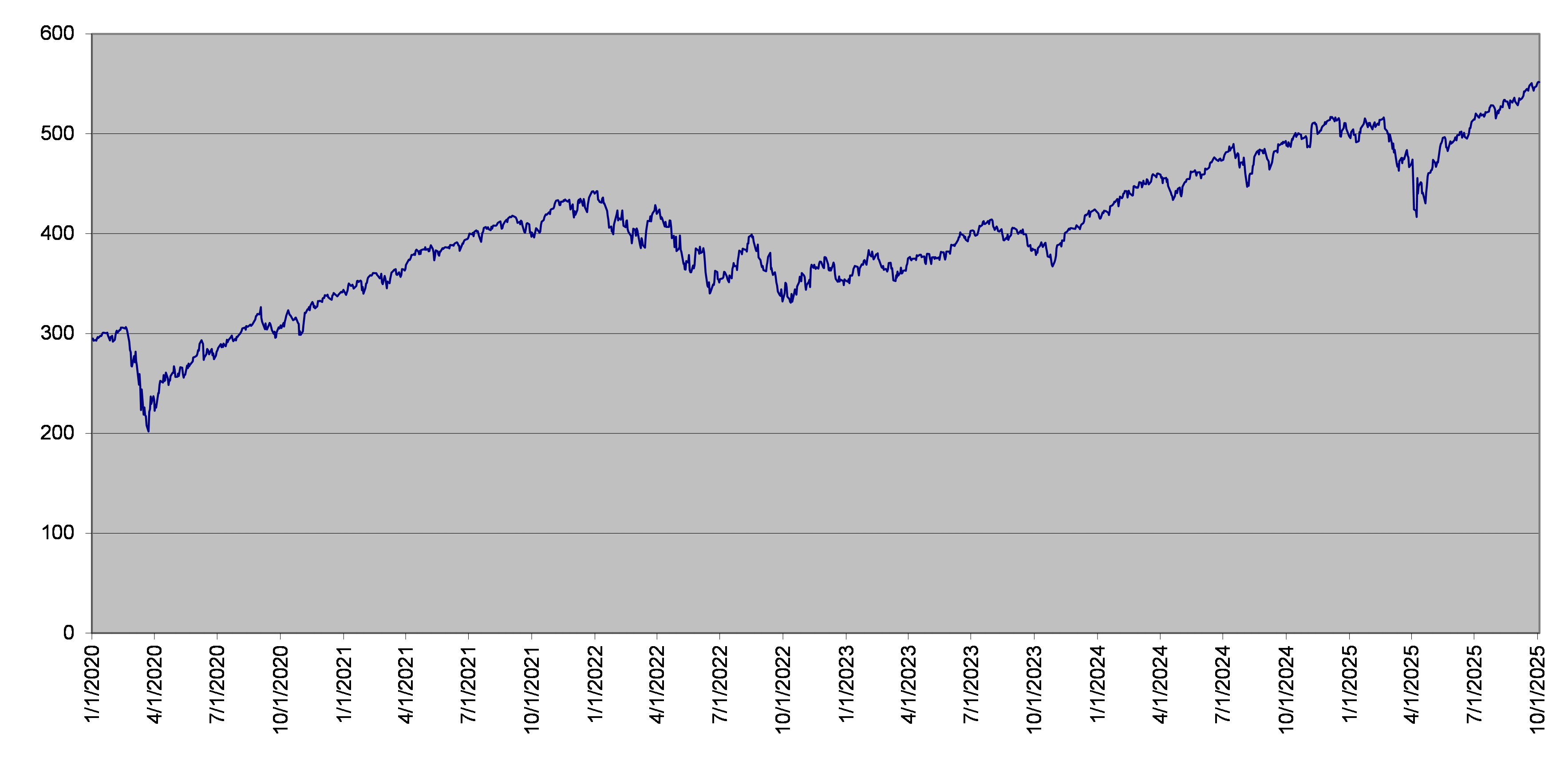Underlier Daily Closing Levels January 1, 2020 to October 3, 2025 |