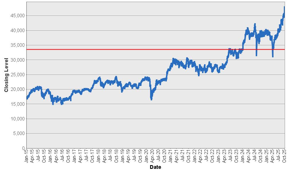 Nikkei 225 Index – Historical Closing Levels* January 2, 2015 to October 7, 2025 |