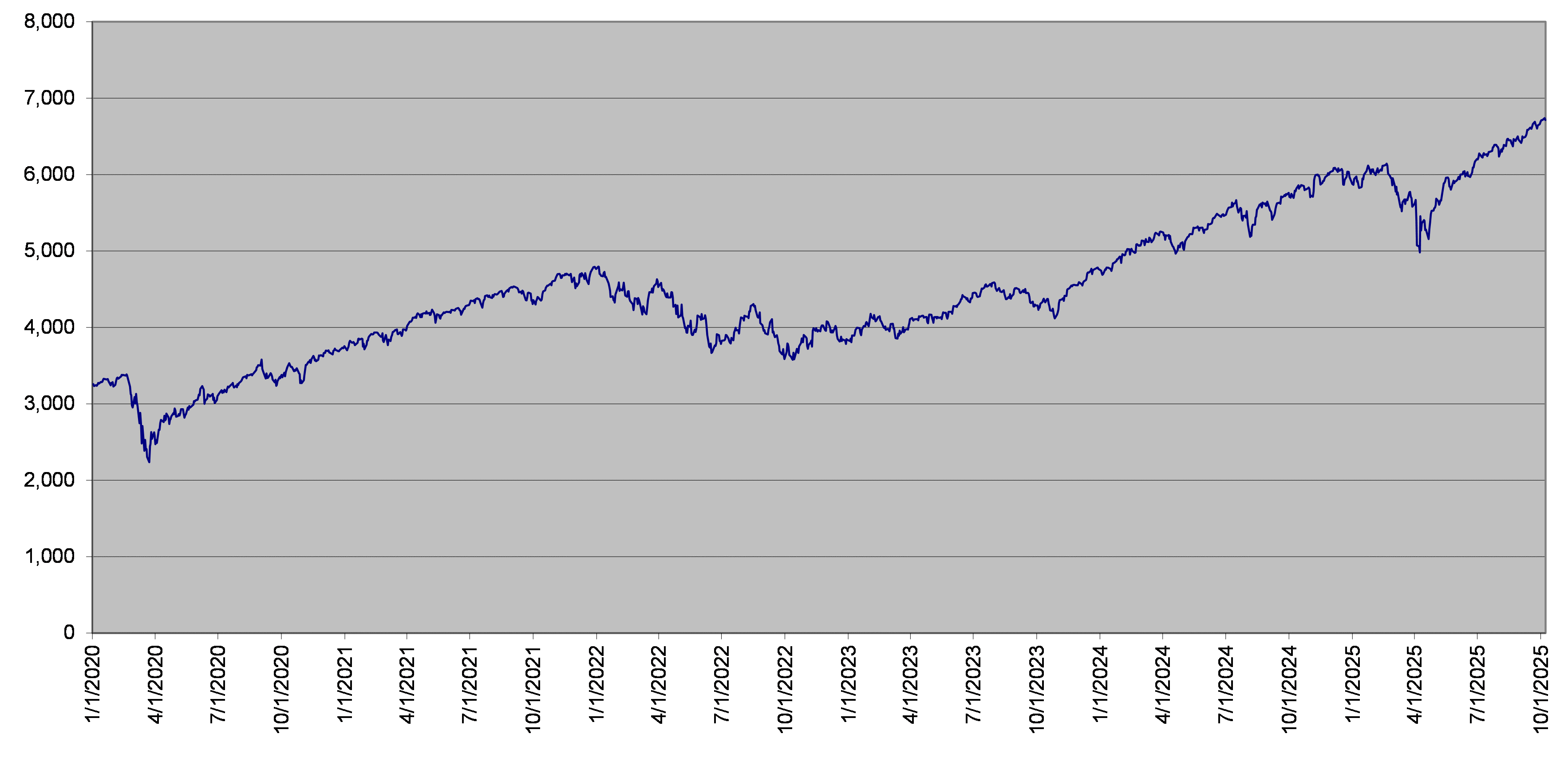 SPX Index Daily Closing Levels January 1, 2020 to October 7, 2025 |