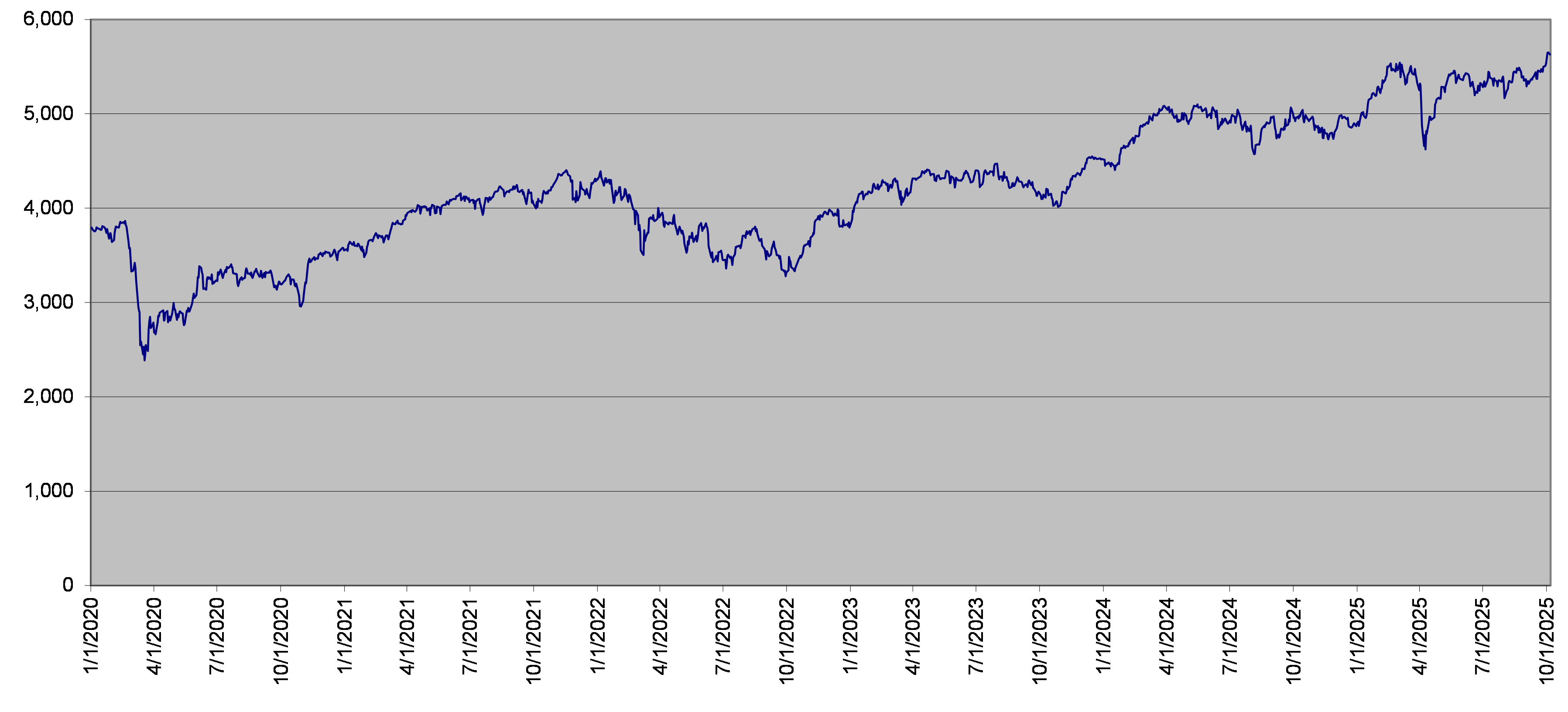 SX5E Index Daily Closing Levels January 1, 2020 to October 6, 2025 |