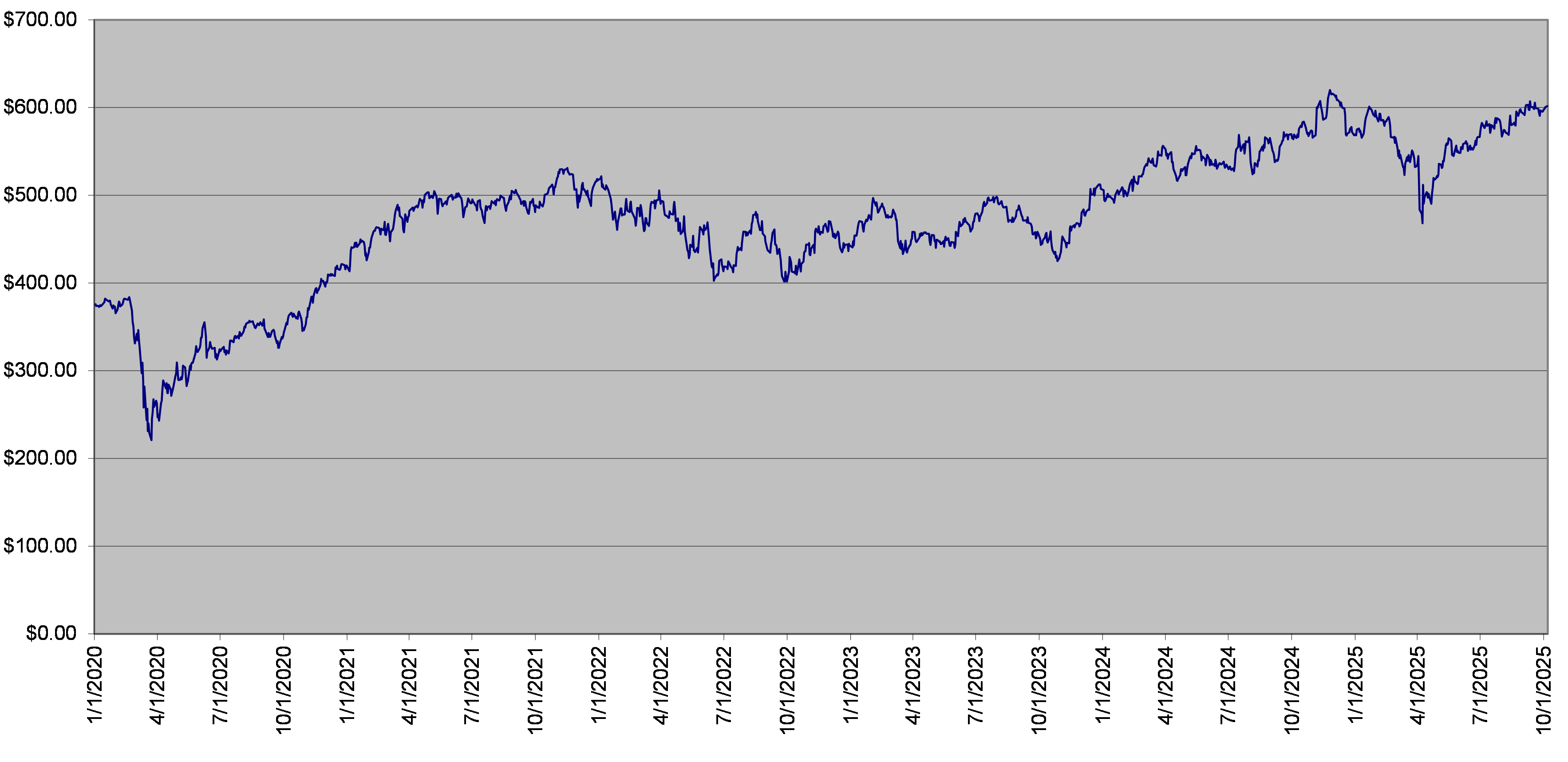 MDY Fund Daily Closing Levels January 1, 2020 to October 6, 2025 |