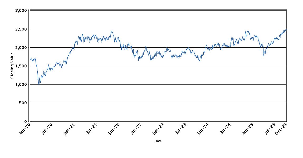 The graph below sets forth the historical performance of the SPX Index based on the daily Closing Value from January 6, 2020 through October 8, 2025. We obtained the Closing Values shown in the graph below from Bloomberg Professional® service (“Bloomberg”). We have not independently verified the accuracy or completeness of the information obtained from Bloomberg.