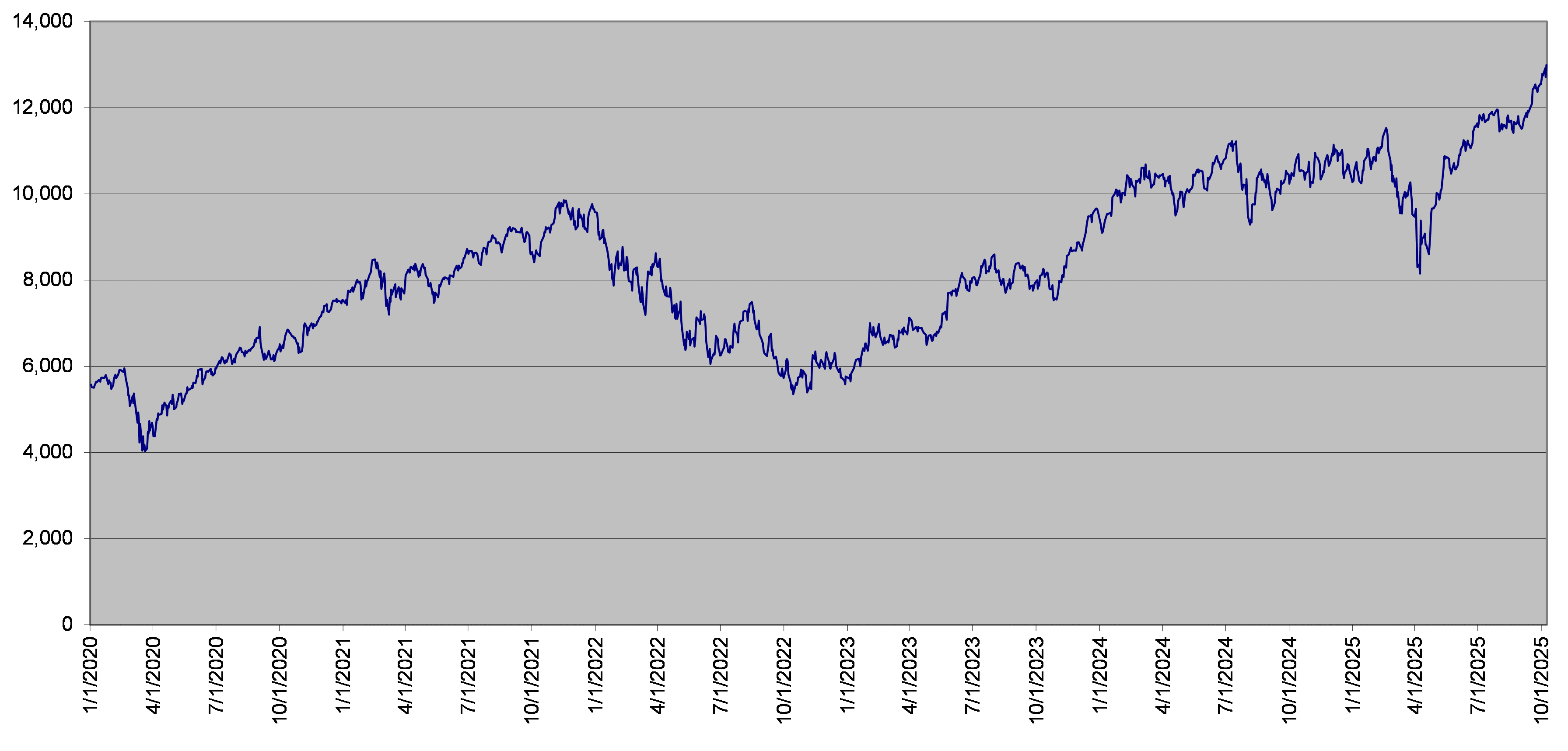 NDXT Index Daily Closing Levels January 1, 2020 to October 8, 2025 |