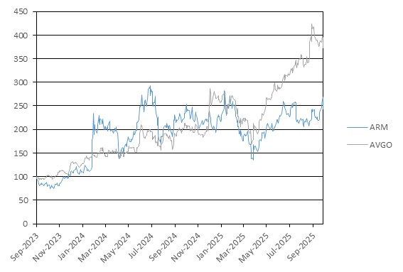 Notes linked to the least performing of the American depositary receipts of Arm Holdings plc and the common stock of Broadcom Inc. |