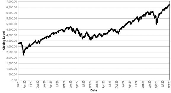 The closing level of the underlier on October 9, 2025 was 6,735.11.