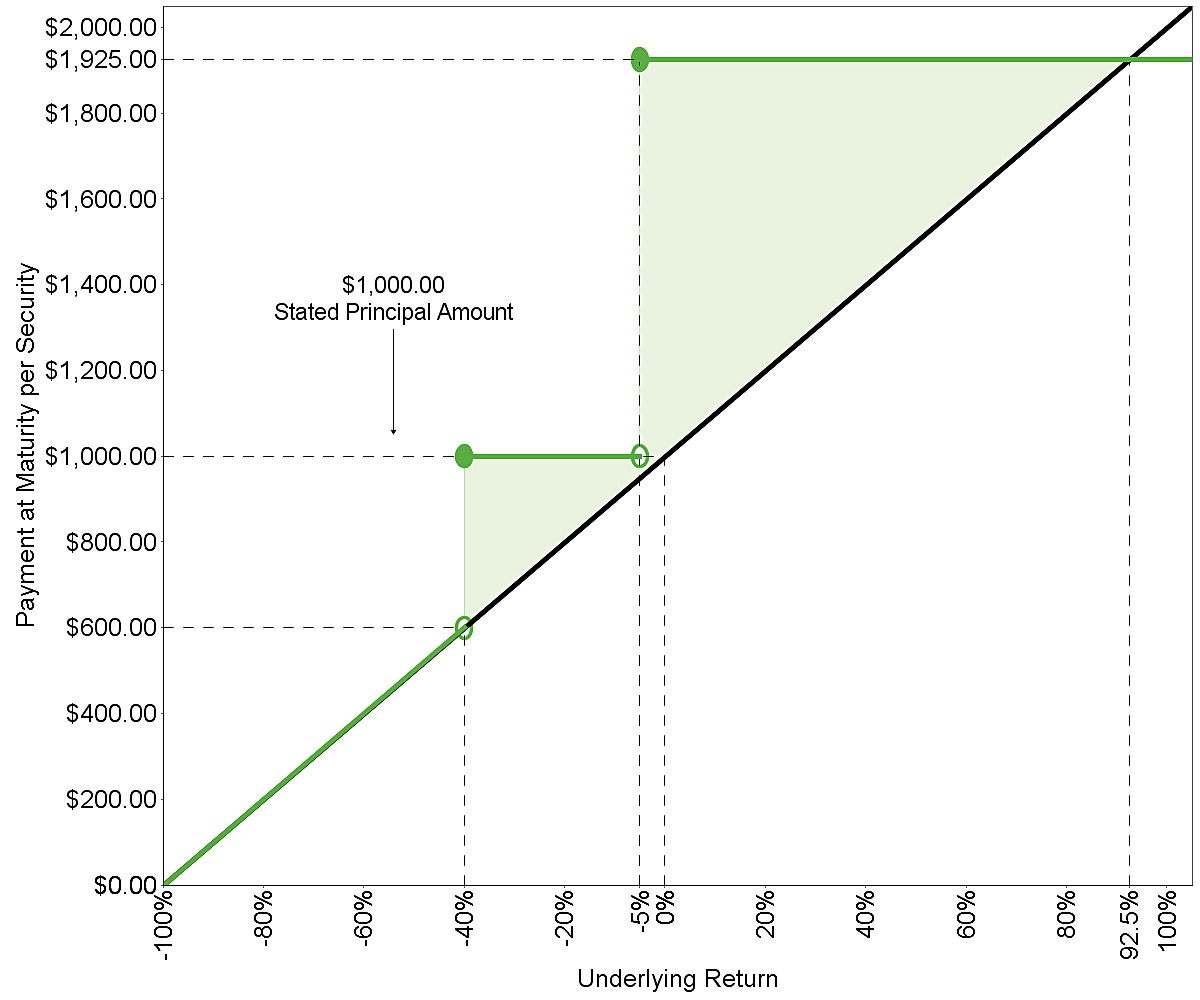 The terms of the securities are set forth in the accompanying product supplement, prospectus supplement and prospectus, as supplemented by this pricing supplement. The accompanying product supplement, prospectus supplement and prospectus contain important disclosures that are not repeated in this pricing supplement. For example, the accompanying product supplement contains important information about how the closing value of the underlying will be determined and about adjustments that may be made to the terms of the securities upon the occurrence of market disruption events and other specified events with respect to the underlying. The accompanying underlying supplement contains important disclosures regarding the S&P 500® Index, on which the S&P 500 Futures 40% Edge Volatility 6% Decrement Index (USD) ER is ultimately based. It is important that you read the accompanying product supplement, underlying supplement, prospectus supplement and prospectus together with this pricing supplement in connection with your investment in the securities. Certain terms used but not defined in this pricing supplement are defined in the accompanying product supplement.