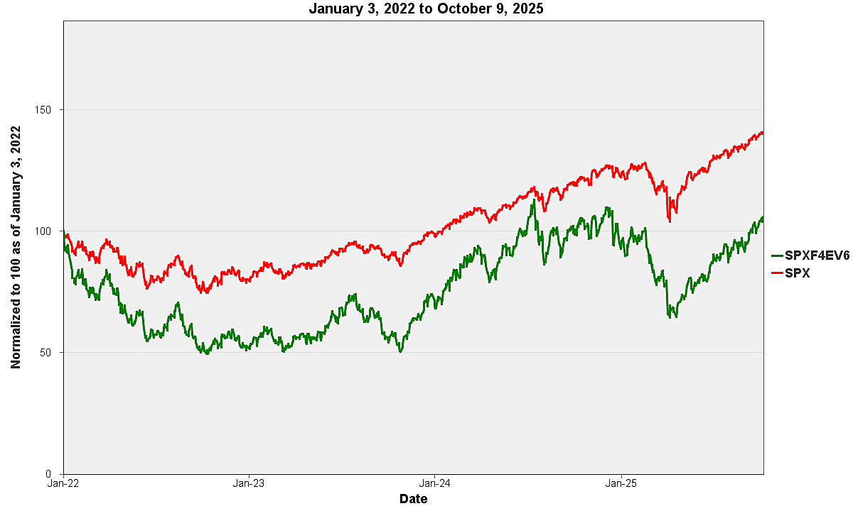 In the graphs below, references to “SPXF4EV6” are to the S&P 500 Futures 40% Edge Volatility 6% Decrement Index (USD) ER and references to “SPX” are to the S&P 500® Index.