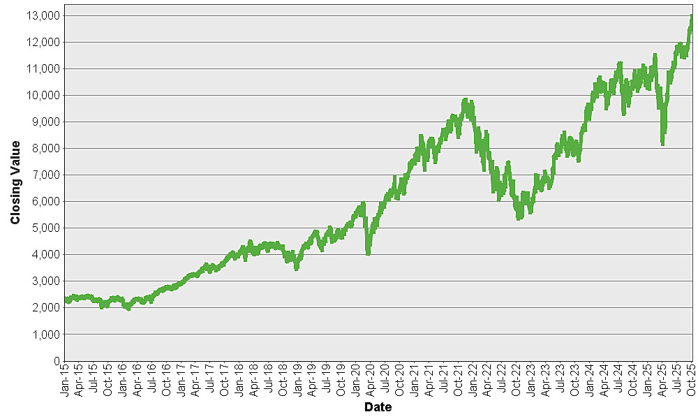 The graph below shows the closing value of the Nasdaq-100® Technology Sector IndexSM for each day such value was available from January 2, 2015 to October 9, 2025. We obtained the closing values from Bloomberg L.P., without independent verification. You should not take historical closing values as an indication of future performance.