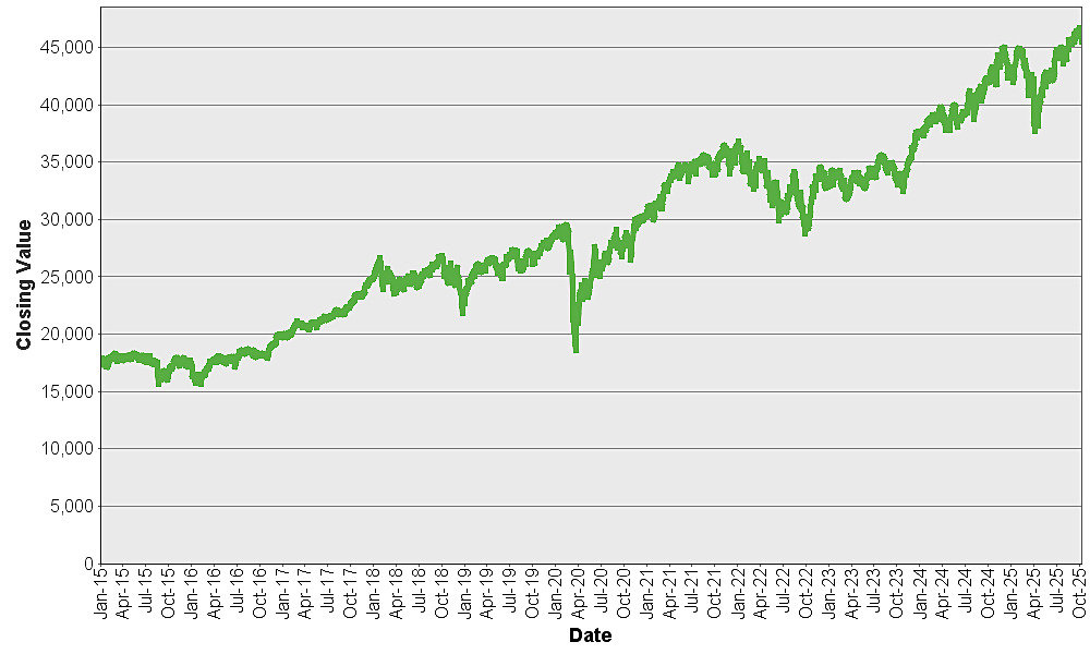 The closing value of the Dow Jones Industrial AverageTM on October 10, 2025 was 45,479.60.