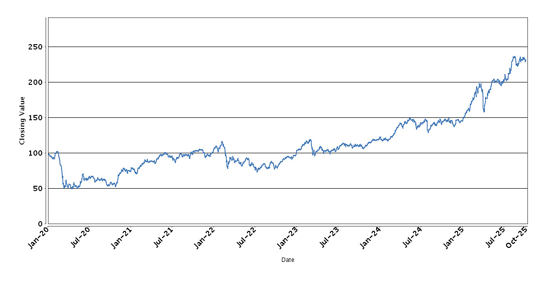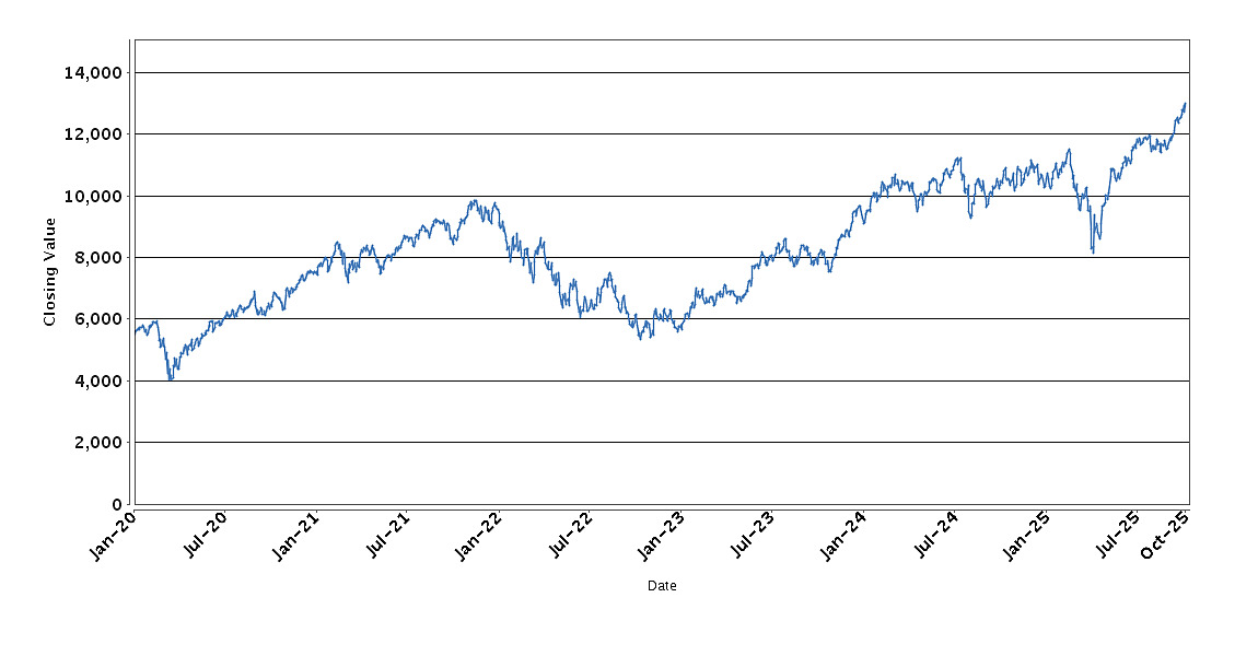 The graph below sets forth the historical performance of the NDXT Index based on the daily Closing Value from January 6, 2020 through October 9, 2025. We obtained the Closing Values shown in the graph below from Bloomberg Professional® service (“Bloomberg”). We have not independently verified the accuracy or completeness of the information obtained from Bloomberg.