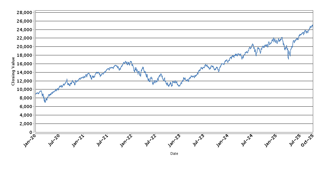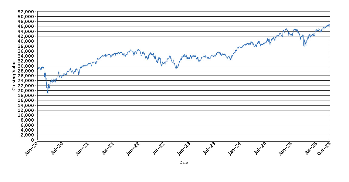 The graph below sets forth the historical performance of the INDU Index based on the daily Closing Value from January 6, 2020 through October 10, 2025. We obtained the Closing Values shown in the graph below from Bloomberg. We have not independently verified the accuracy or completeness of the information obtained from Bloomberg.