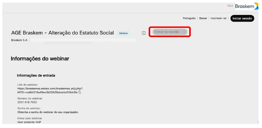We suggest that Participants access the Digital Platform at least 15 (fifteen) minutes before the beginning of the Meeting, in order to avoid possible operational problems with the tool.