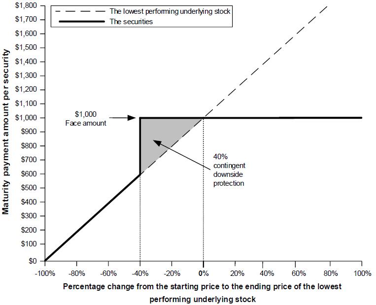 ●if the ending price of each underlying stock is greater than or equal to its respective downside threshold price: $1,000; or ●if the ending price of any underlying stock is less than its respective downside threshold price: $1,000 × performance factor of the lowest performing underlying stock on the final calculation day |