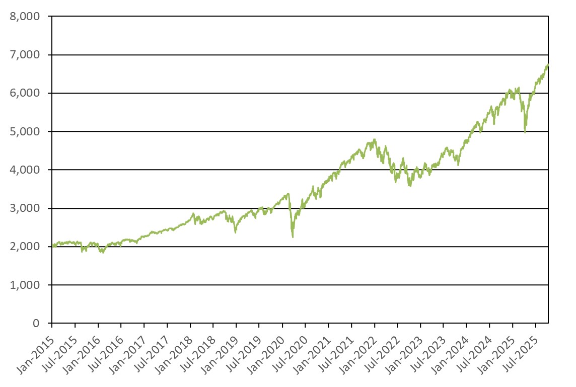The following graph shows the daily historical performance of the Index in the period from January 1, 2015 through October 9, 2025. We obtained this historical data from Bloomberg L.P. We have not independently verified the accuracy or completeness of the information obtained from Bloomberg L.P. On the pricing date, the closing level of the Index was 6,735.11.