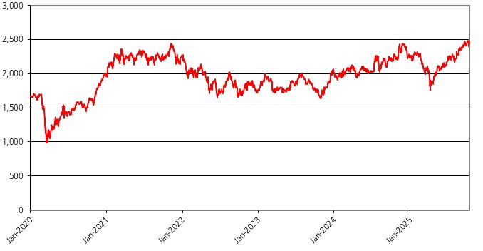 Russell 2000® Index – Daily Index closing values January 1, 2020 to October 13, 2025 |