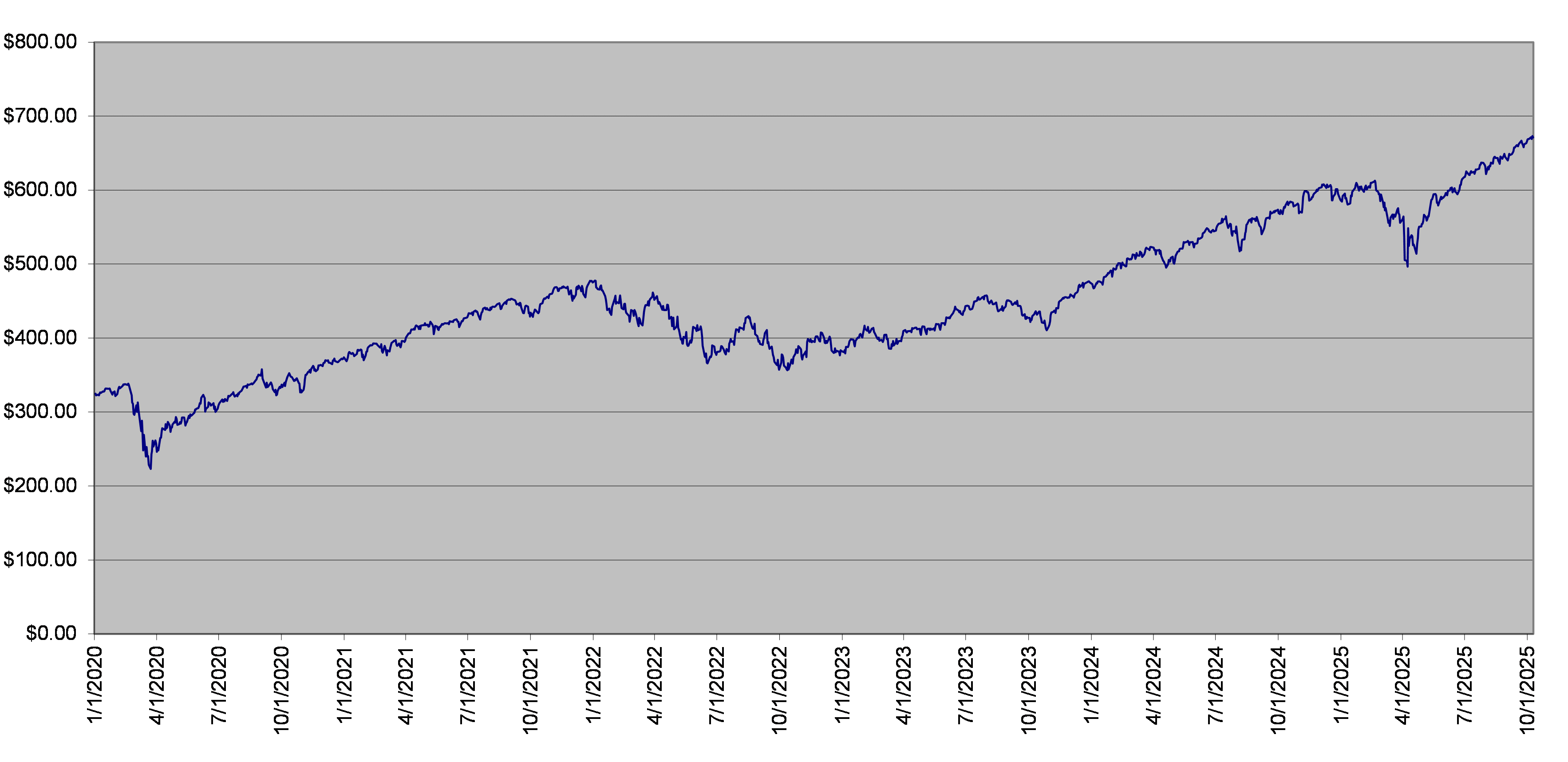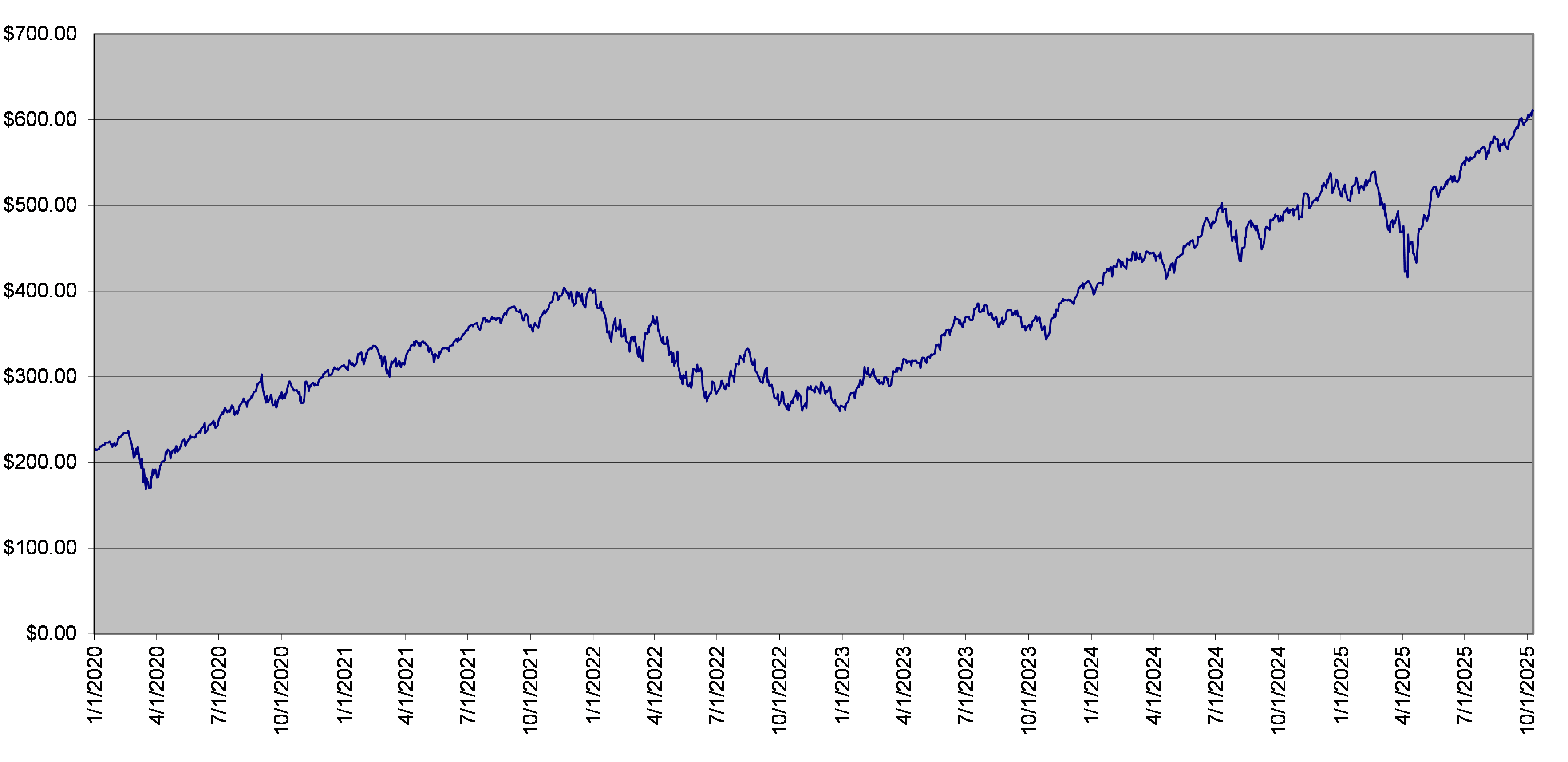 SPY Fund Daily Closing Levels January 1, 2020 to October 9, 2025 |