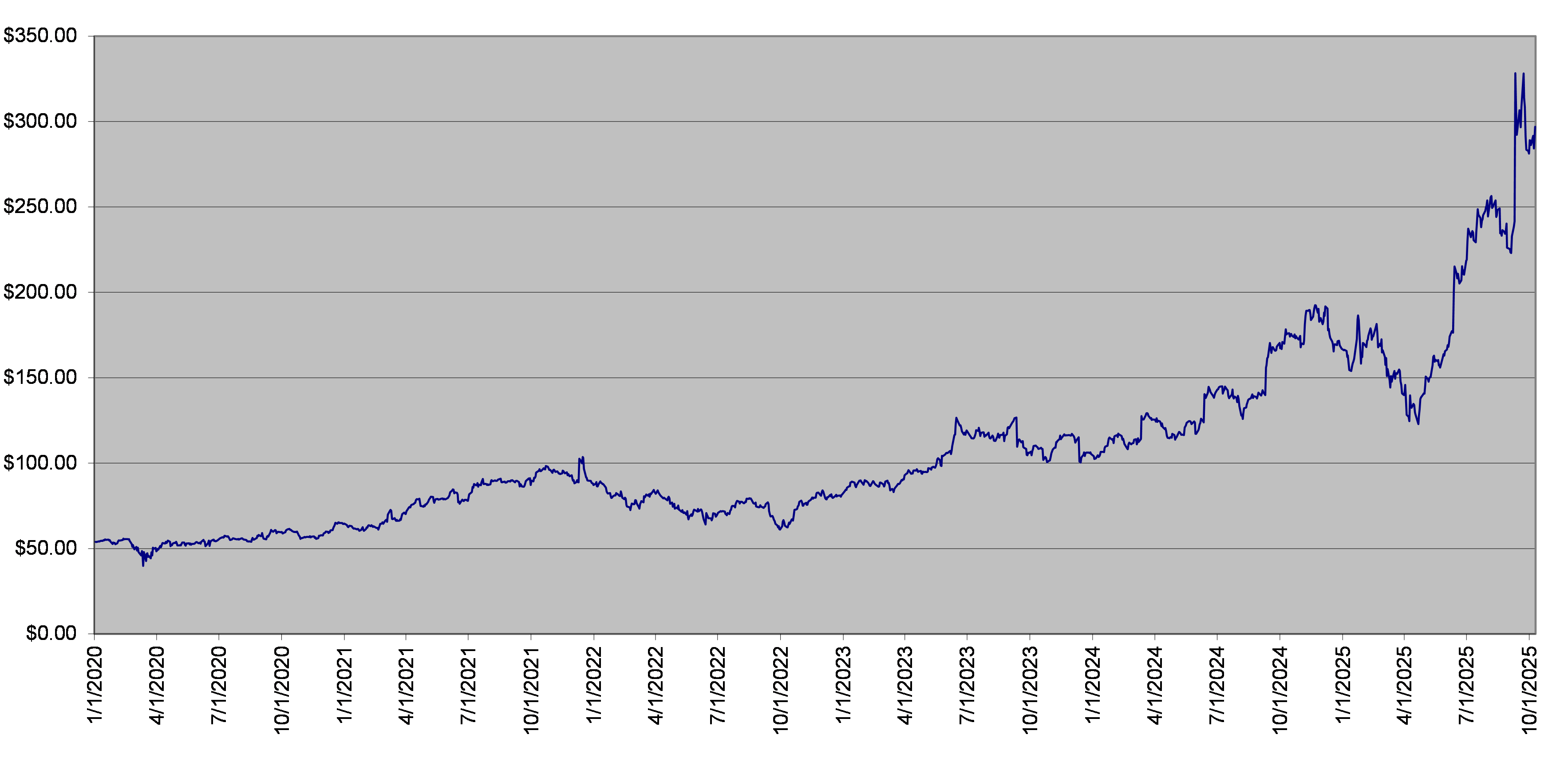 Underlier Daily Closing Levels January 1, 2020 to October 9, 2025 |