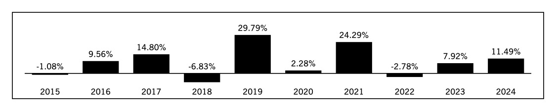 For the ten years ended December 31, 2024, the highest quarterly total return for Class A was 15.76% for the quarter ended December 31, 2020, and the lowest quarterly return was -26.49% for the quarter ended March 31, 2020.