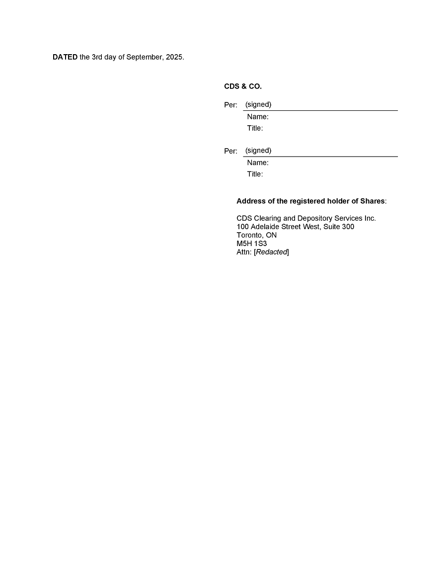 The Company is providing this information circular (the “Information Circular”) and a GREEN Proxy in connection with management’s solicitation of proxies for use at the special general meeting (the “Meeting”) of the Company to be held on Tuesday, November 25, 2025 and at any adjournments thereof. Unless the context otherwise requires, when we refer in this Information Circular to the Company, its subsidiaries are also included.