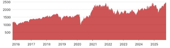 The following graph sets forth the historical performance of the NDX based on the daily historical closing values from October 15, 2015 through October 14, 2025. We obtained the closing values below from the Bloomberg Professional® service. We have not undertaken any independent review of, or made any due diligence inquiry with respect to, the information obtained from the Bloomberg Professional® service.![]() |
