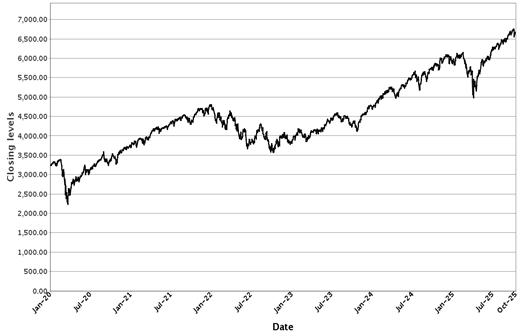 The S&P 500® Index – Historical Closing Values January 2, 2020 to October 16, 2025 |