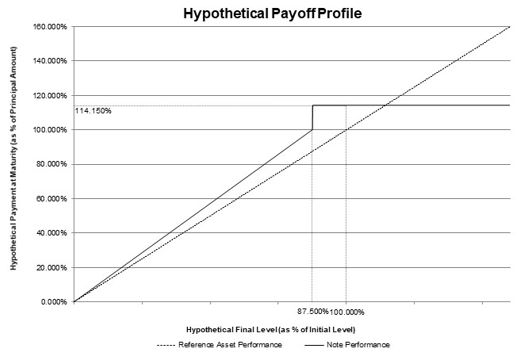 threshold level of 87.50% of the initial level, your payment, if any, will be less than the principal amount and you will have a loss equal to the percentage decrease below the threshold level times the downside multiplier of approximately 1.1429.