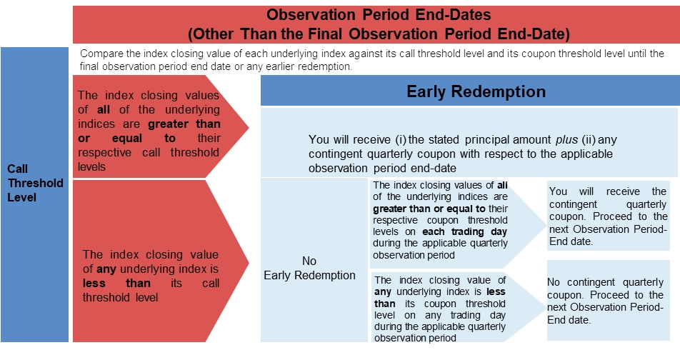 the related observation period end-date. No further payments will be made on the securities once they have been redeemed. The securities will not be redeemed early on any contingent coupon payment date if the