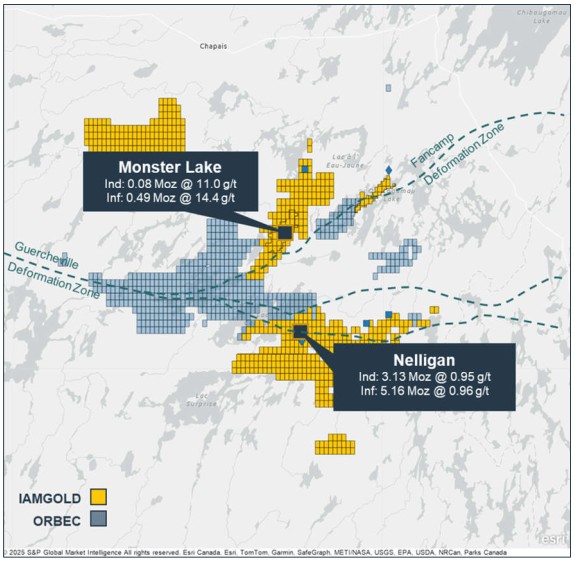 Toronto, Ontario, October 20, 2025 - IAMGOLD Corporation (NYSE:IAG, TSX:IMG) ("IAMGOLD" or the "Company") is pleased to announce that the Company has signed a definitive arrangement agreement (the "Arrangement Agreement") with Mines D'Or Orbec Inc. (TSXV:BLUE) ("Orbec") pursuant to which IAMGOLD has agreed to acquire all of the issued and outstanding common shares of Orbec (each, an "Orbec Share") by way of a court-approved plan of arrangement under the Business Corporations Act (Ontario) (the "Transaction"). The acquisition will consolidate IAMGOLD's existing ownership of Orbec Shares through which the Company will add the highly prospective Muus Project, which is adjacent to the Company's Nelligan and Monster Lake Projects in the Chibougamau region of Quebec, Canada.